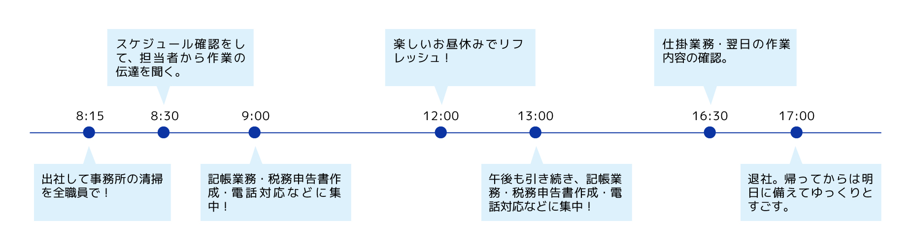 産休、育休の間の仕事の引継ぎなど事務所内のサポートはしっかりしています。頼れる心強い先輩や同僚がいますし、繁忙期には元職員の方が短期アルバイトに来てくださいます。
